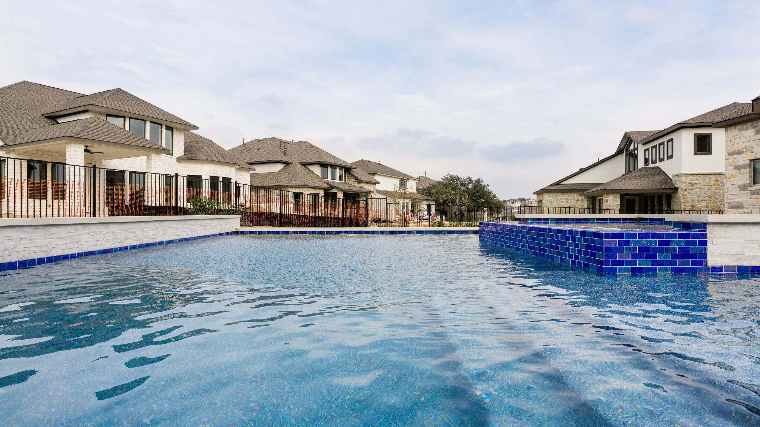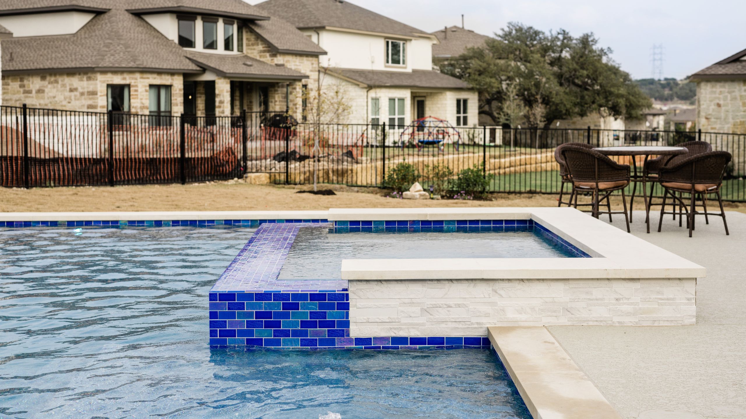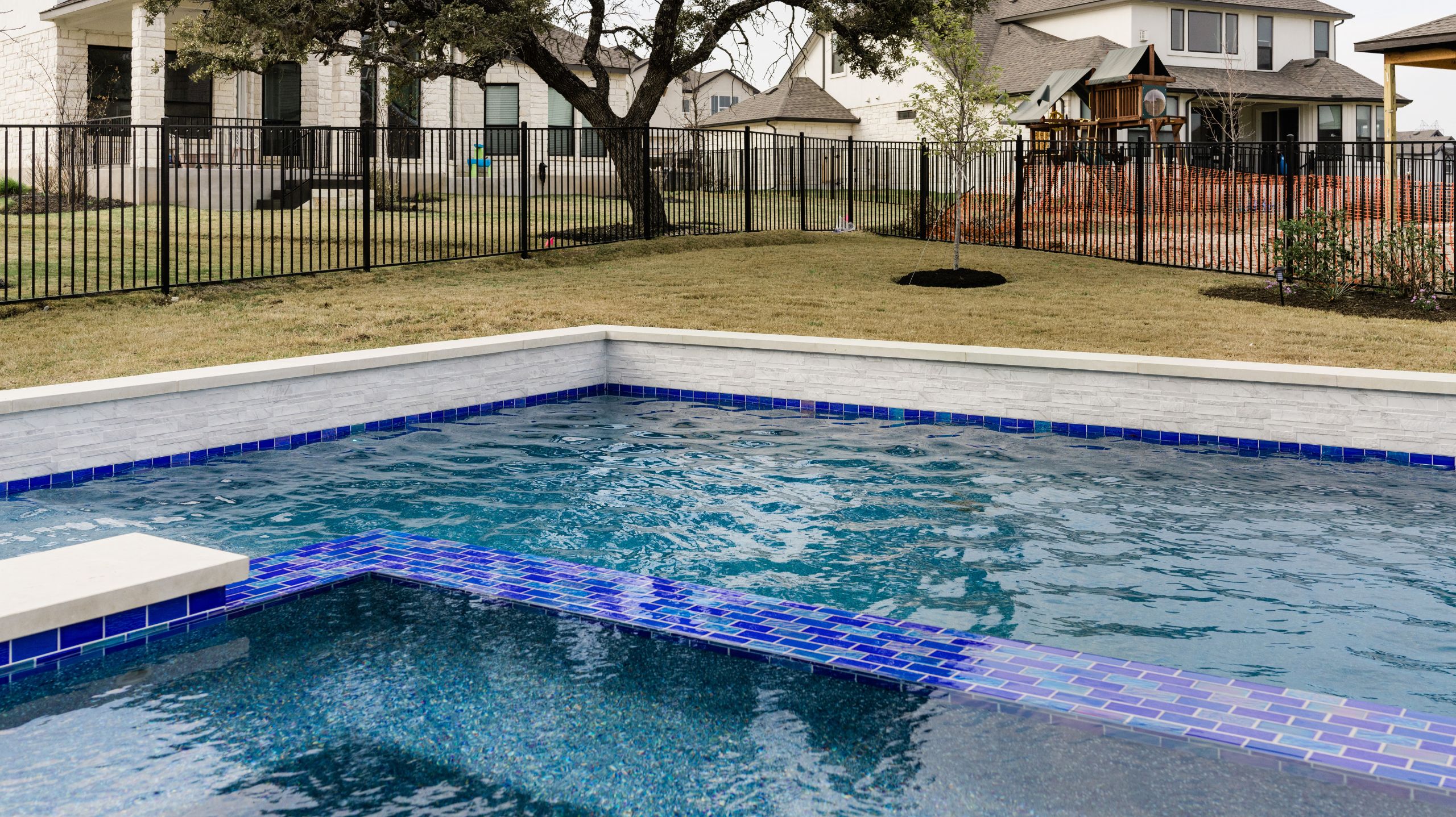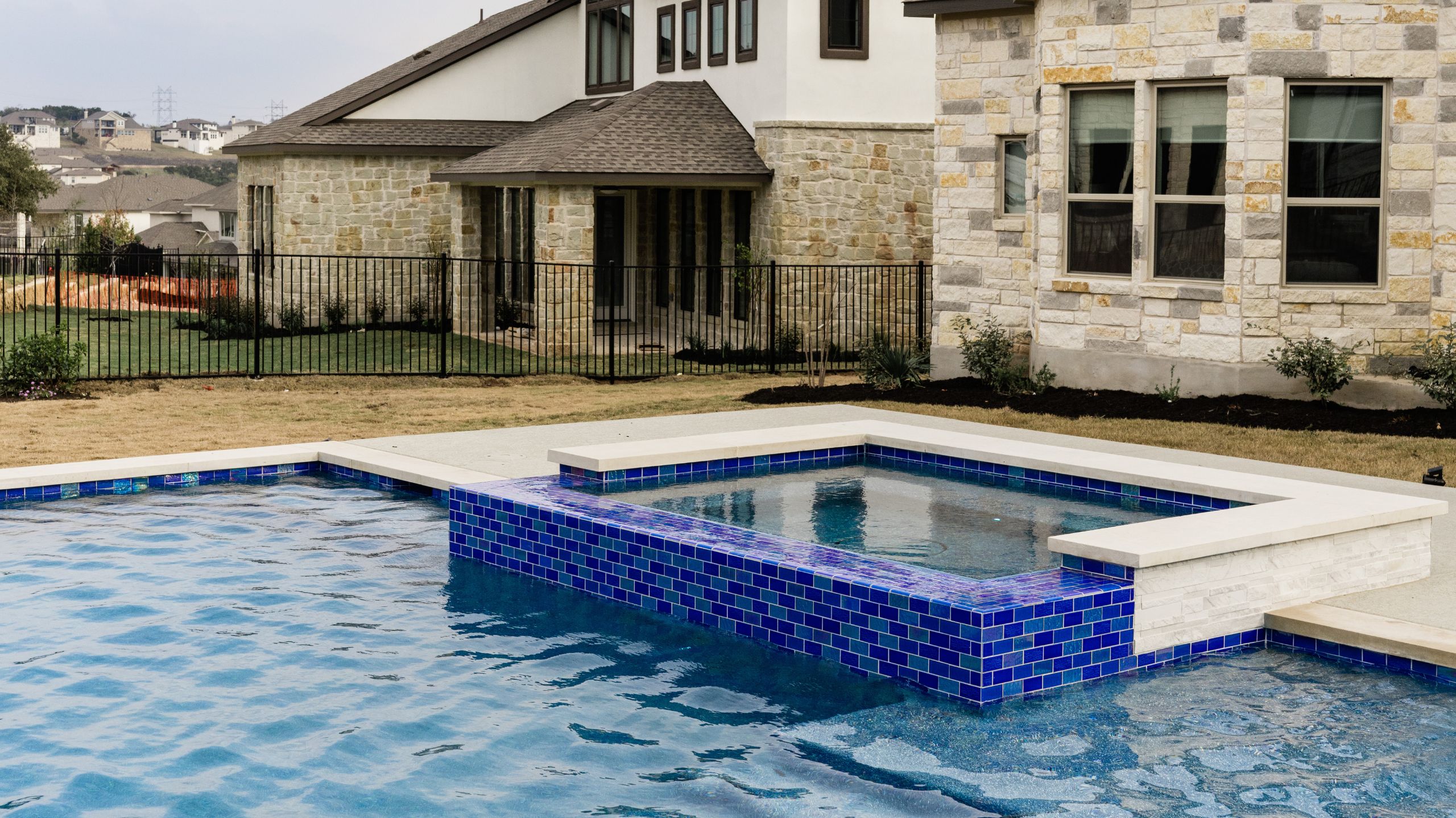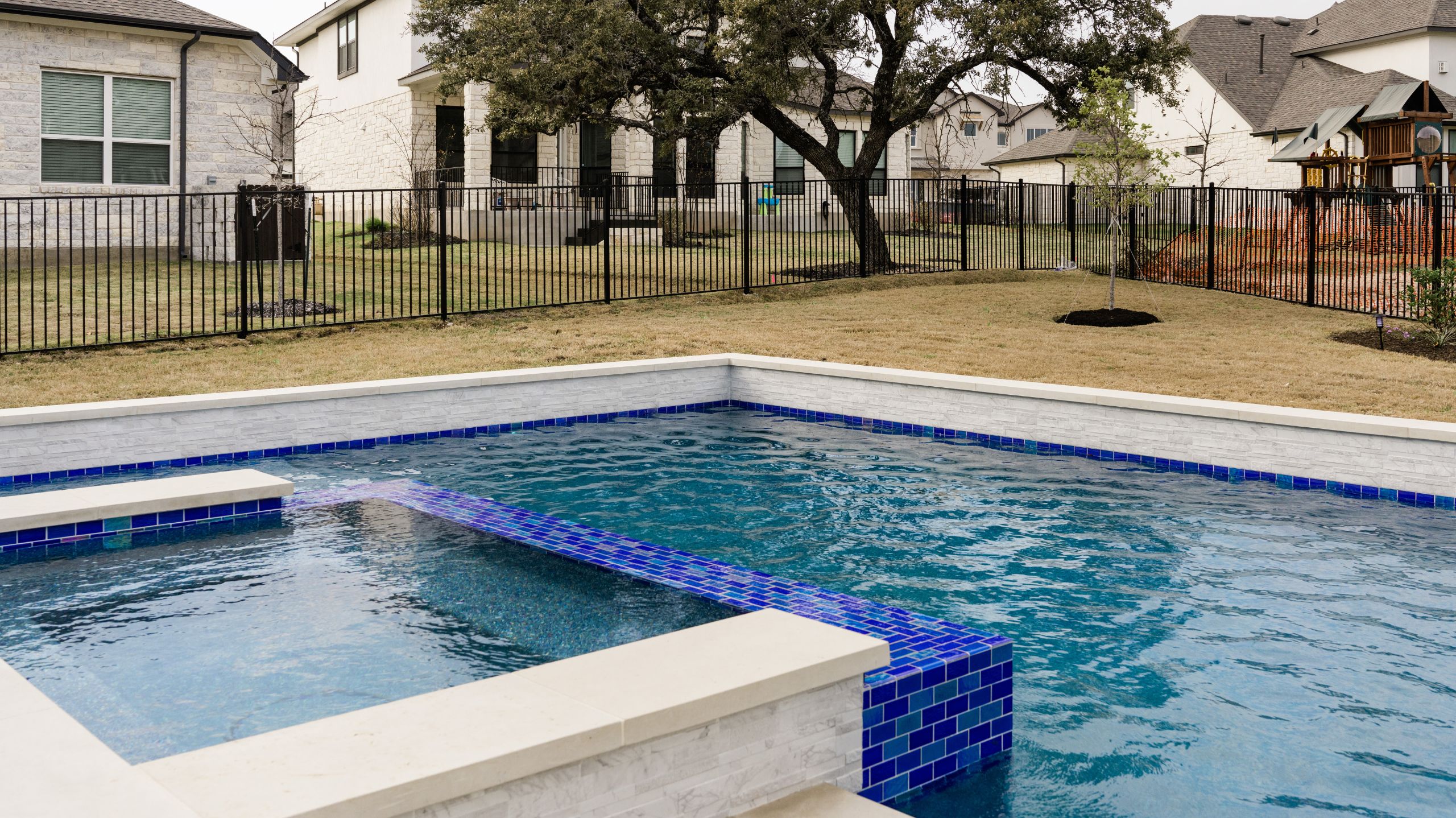 Crisp lines, bold color, and a spa that makes a statement. This modern classic features vibrant blue tile accents, a spacious swim area, and a raised spa perfect for soaking and socializing. It's simple, stylish, and built for backyard memories.