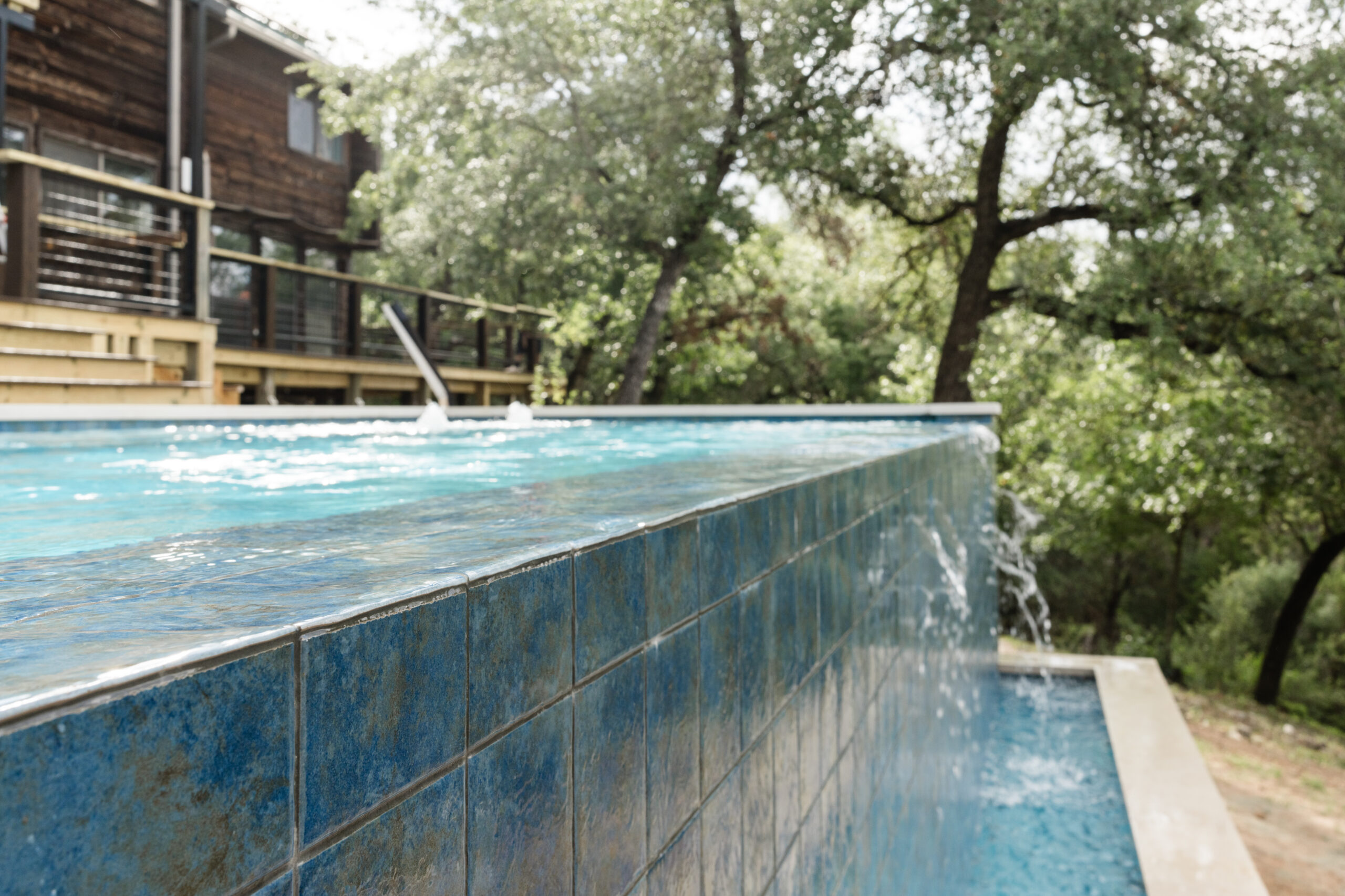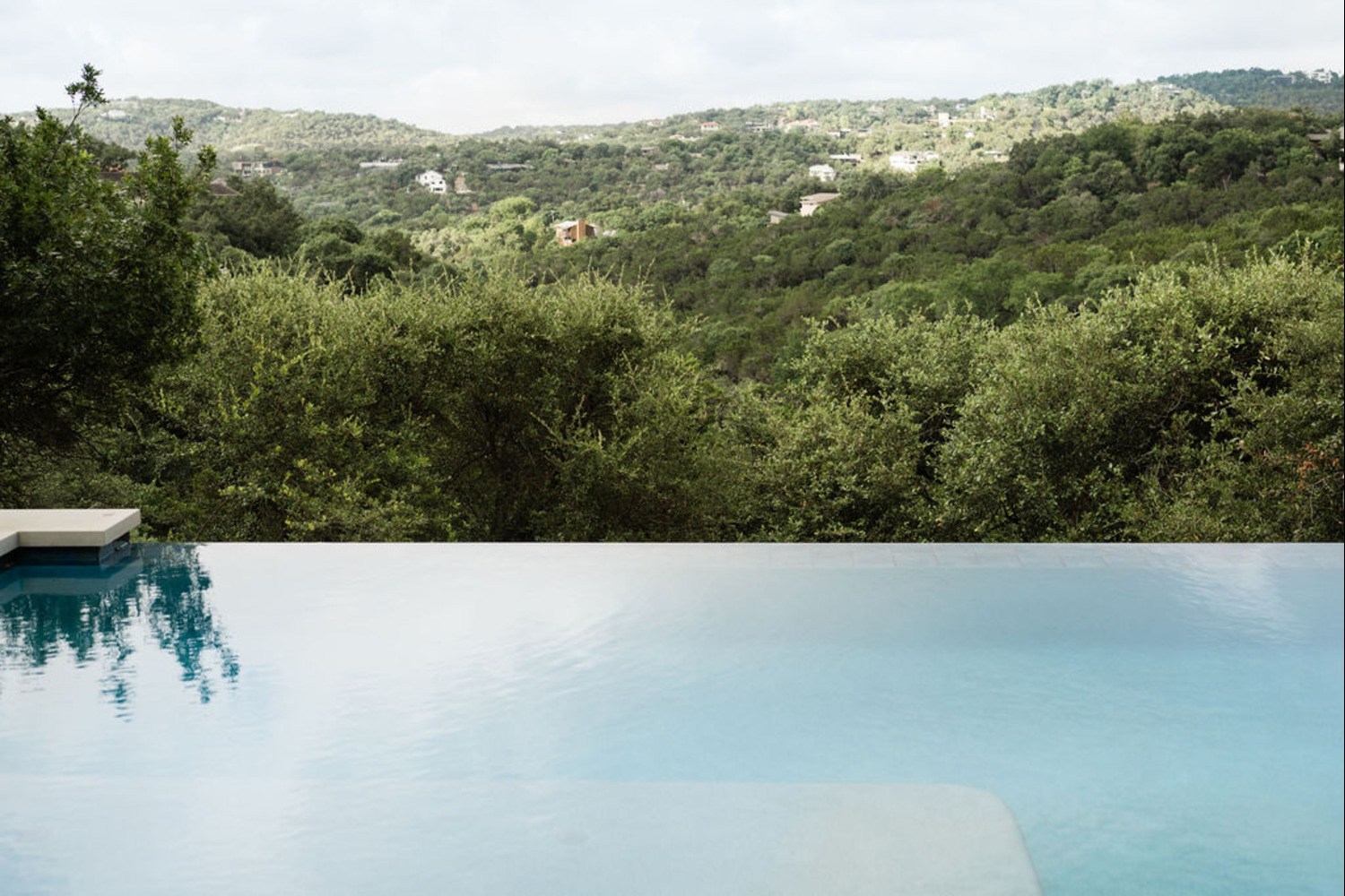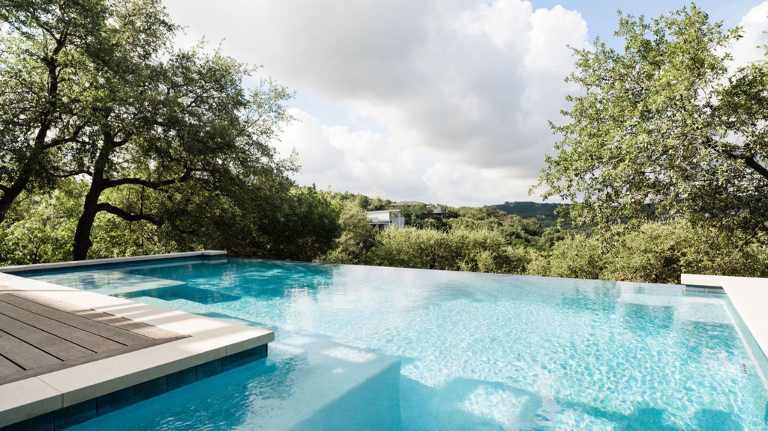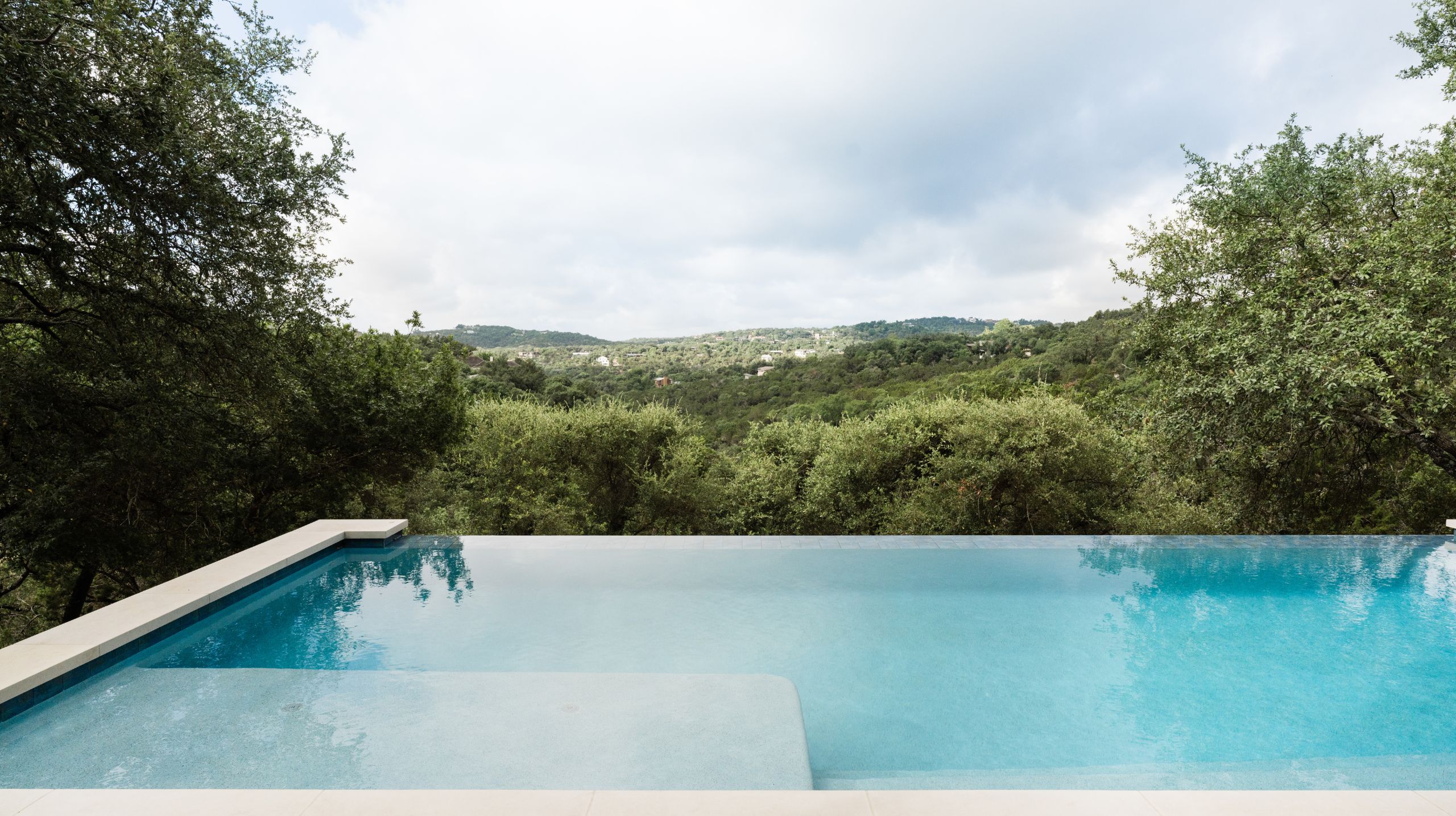 This pool is a total chill zone with its infinity edge overlooking the Hill Country. The fresh aqua water pairs perfectly with the sunken seating area—an epic spot to hang out, relax, and soak in the view. The spacious deck has plenty of room for friends and family to kick back, catch some rays, and enjoy those laid-back, easygoing vibes all day long.